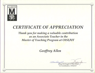 I have helped support teacher-candidates from OISE/UT at both my schools.